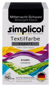 – zawartość sztucznych włókien przy farbowaniu barwnikiem Simplicol Expert, nie powinna przekraczać 50% składu tkaniny.